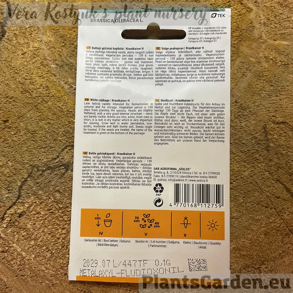 Семена: Могут обрабатываться; подробности обработки указаны на нижней части упаковки.
