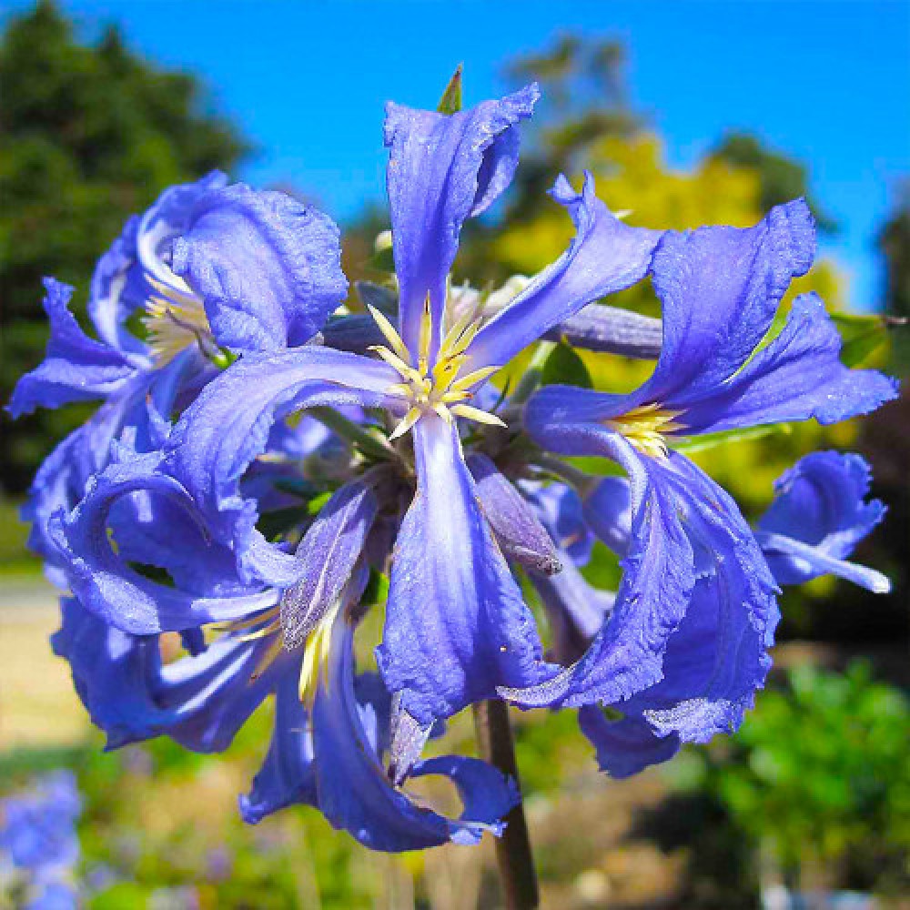 Травянистый многолетник (не лиана), высотой 90-100 см. Побеги жёсткие, не вьются вокруг опор, но могут на них опираться. Листва крупная зубчатая. Цветки ярко-голубые, трубчатые, из 4-х лепестков, немного напоминают гиацинт, мелкие, ароматные. Лепестки надрезанные по краям и сильно вывернутые назад. Цветение в июле-сентябре. Осенью образует пушистые соплодия. Особенно подходит для использования в цветниках или между кустарниками. Место солнечное или полутенистое. Зона 4 (до -29ºС).