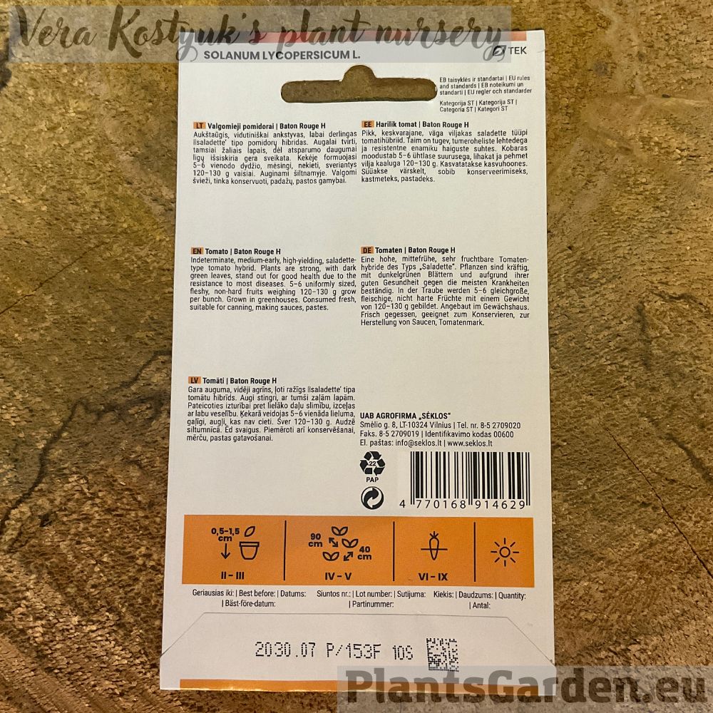 Latin name: Solanum lycopersicum L.